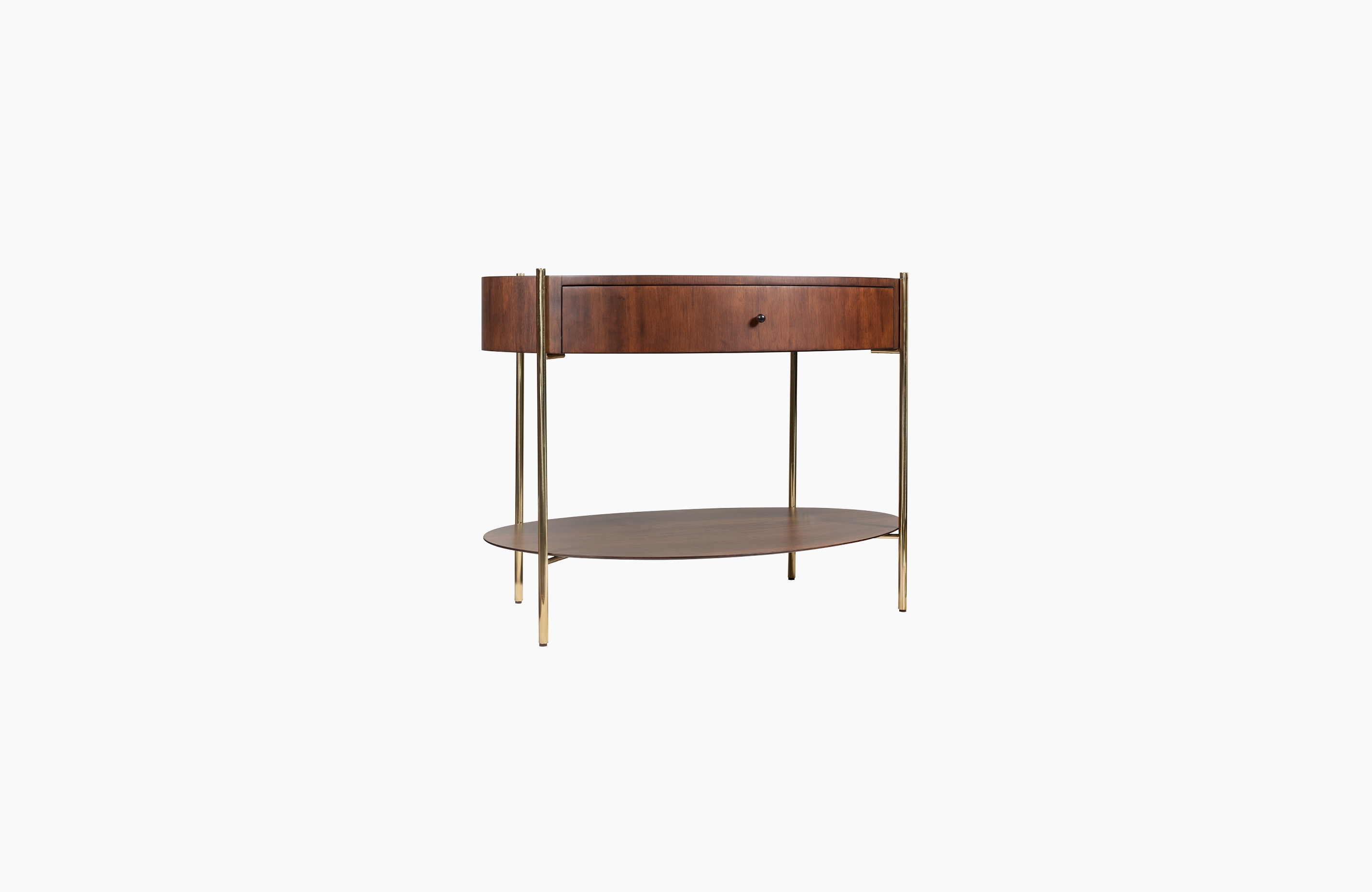 Mesa inspirada nos antigos móveis franceses, com estética contemporânea e opções de uma ou quatro gavetas. Em madeira Carvalho, Jequitibá e Nogueira e microtextura Branco e Preto, com detalhes em latão. Design: Lattoog Design.